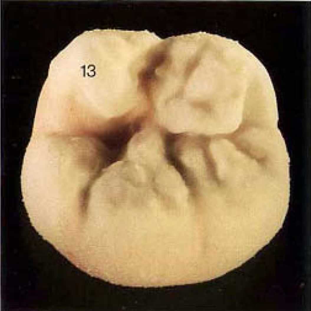 Рис. 14. Зуб после конденсации. Четкие контуры фиссур несколько "смазались".