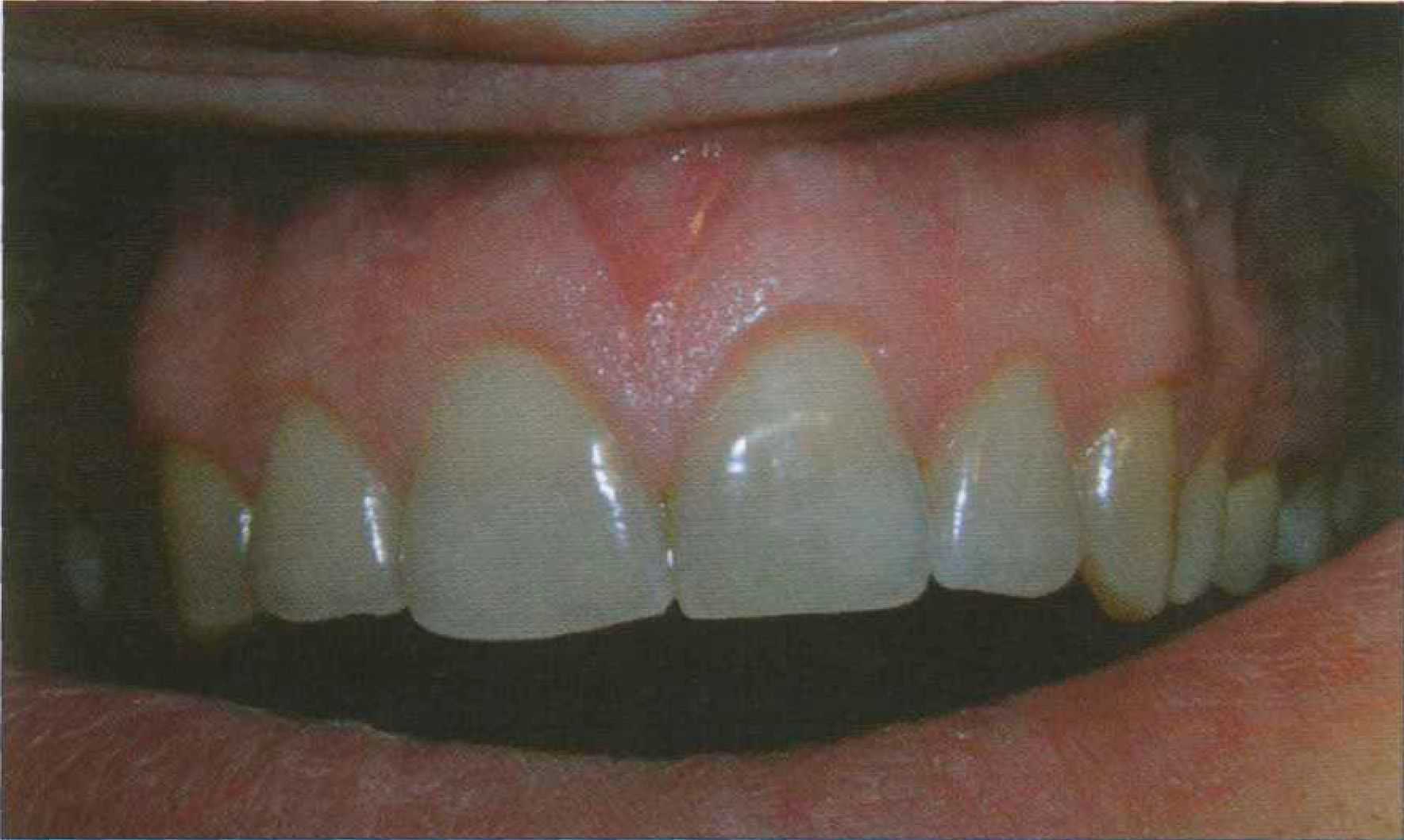 Известно, что полное отражение света характерно для белой поверхности. Поэтому превалирующий оттенок эмали — белый. Натуральные зубы иногда бывают белее самого светлого эталона в наборе композитных материалов. Для сравнения: отражающие способности фотополимера Charisma (по показателю диффузного отражения, R, %) колеблются от 5 до 32. Наибоее близки к показателю светоотражени: мали образцы А10, В10, В20 (рис. 55).