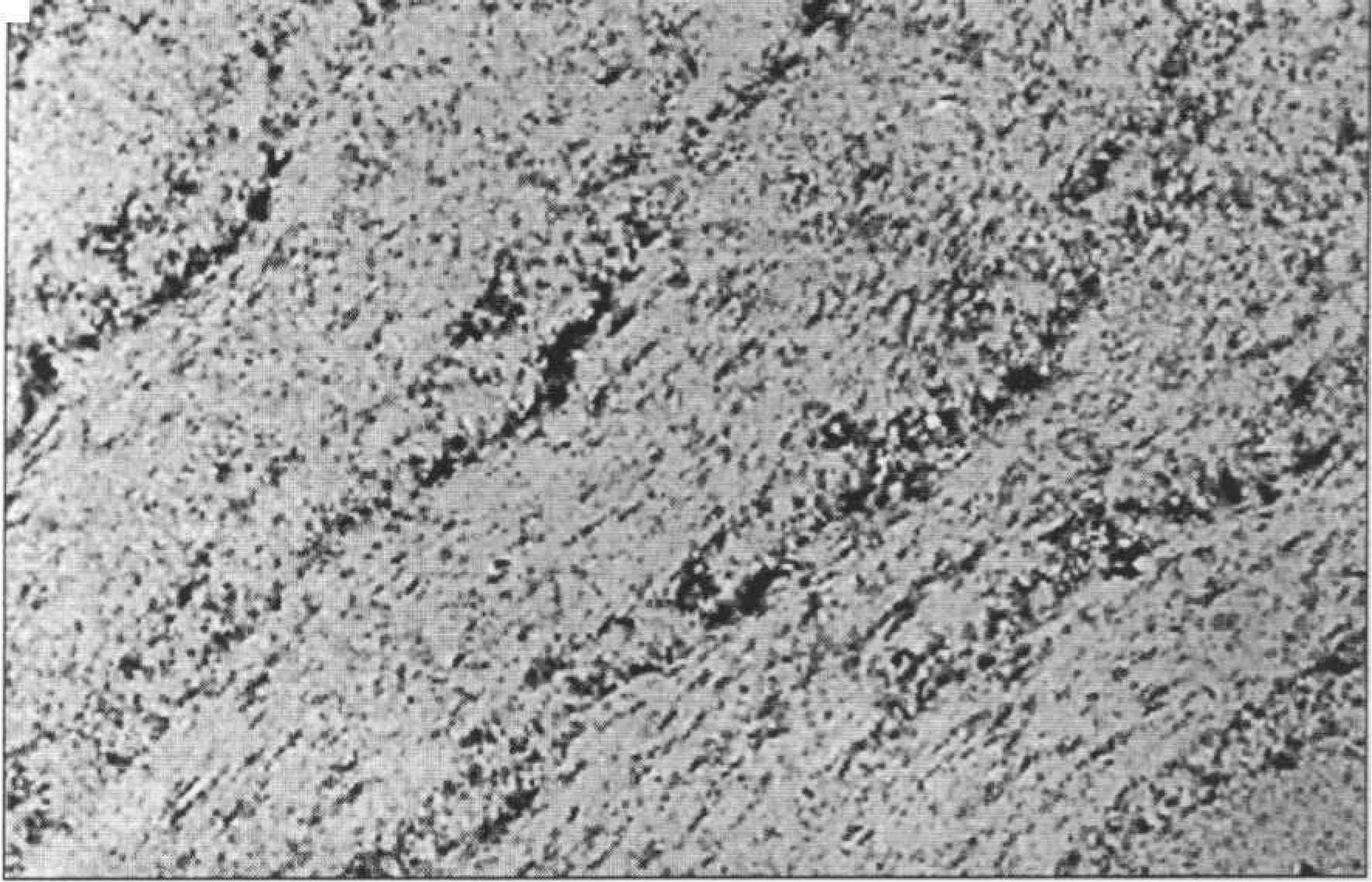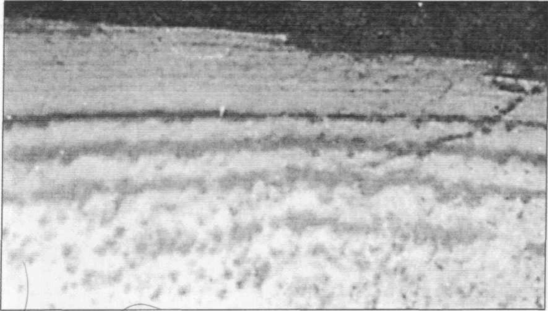 Как в поверхностных, так и глубоких слоях наблюдаются линии Ретциуса, которые представляют участки низкой минерализации толщиной 200-400 нм, идущие поперечно ходу эмалевых призм. В пришеечной области расстояние между ними 20-30 мкм. Они могут располагаться на неравномерном расстоянии друг от друга. Минерализованность их может различаться (рис. 94).