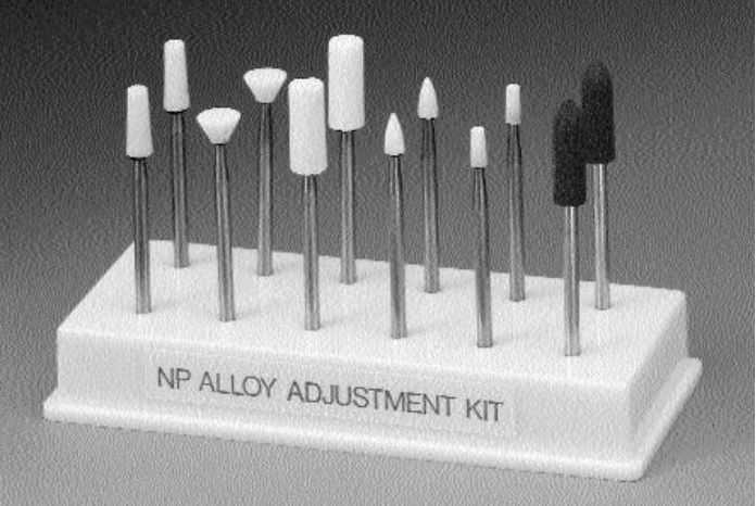 Ассортимент инструментов для корректировки работ из сплавов, не содержащих драгметаллов, в лаборатории и зубоврачебном кабинете.
