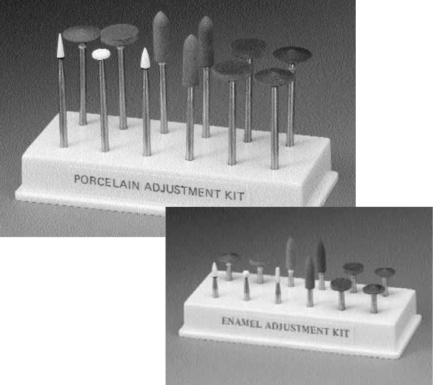 Корректировка без образования сколов на подлежащих фиксации керамических работах и полировка до получения глянцевой поверхности без дополнительного обжига. Используются также для корректировки зубной эмали.