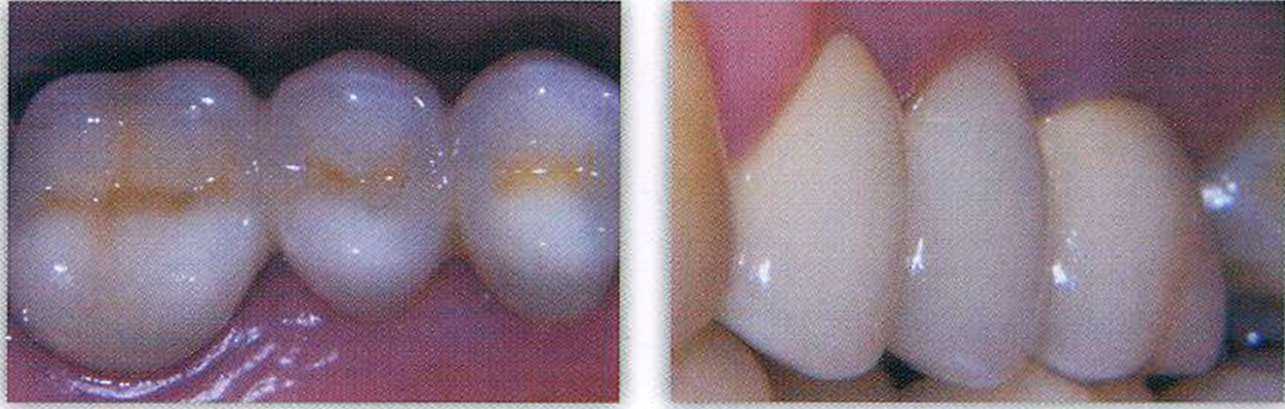 Заключение Использование овоидной формы десневой поверхности промежуточной части мостовидного протеза (ovate pontic) в боковых отделах челюсти позволяет улучшить эстетику десны в области удаленного зуба, сохранить контур десневого края и форму десневого сосочка, а также добиться прекрасного эстетического результата. Формирование десневых сосочков предотвращает задержку пищи и накопление налета в области соединения промежуточной части мостовидного протеза и опорной коронки (рис. 11-13).