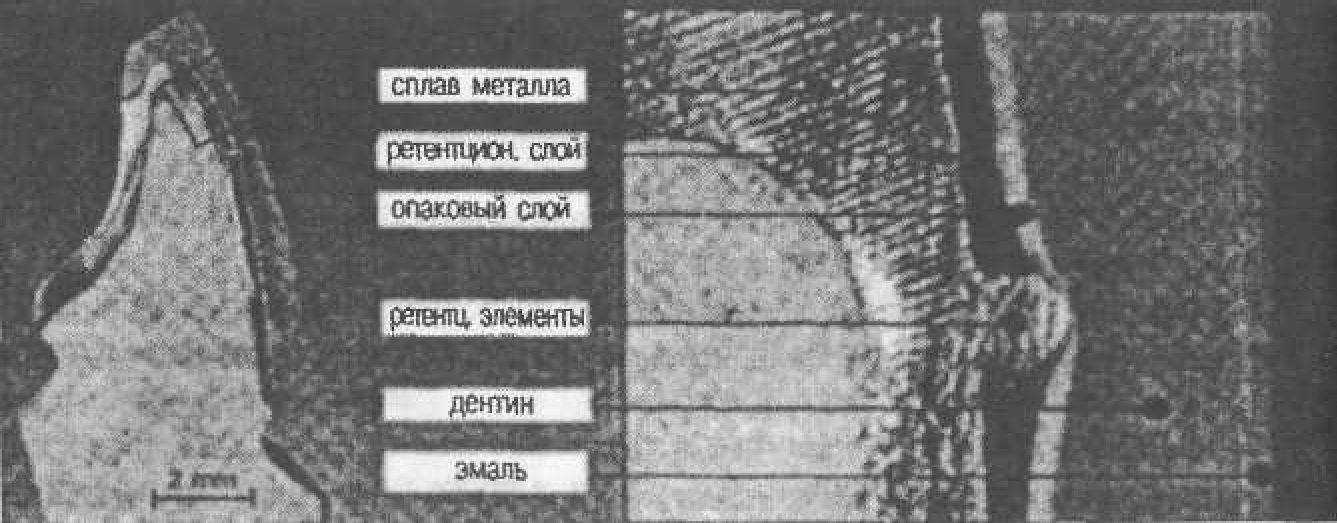 Важно подчеркнуть, что ранее, до применения силикотера, механическое сцепление металлического каркаса с облицовочным материалом обеспечивалось с помощью ретенционных колец. Однако такая технология изготовления зубных протезов не обеспечивала полного прилегания облицовки, а имеющаяся между ними щель около 20 мм способствовала не только отложению в ней бактерий, слюны и пищевых остатков, но и постепенному изменению цвета облицовки, а также механическим повреждениям зубопротезной конструкции.