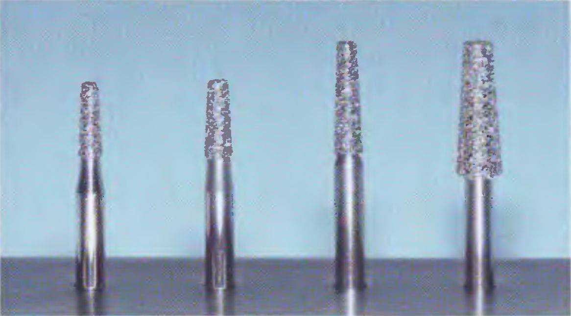 Рис. 11. Боры различной абразивности, используемые при одонтопрепарировании под вкладки