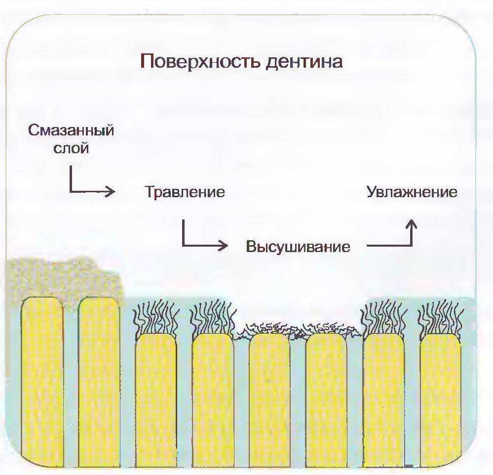 вающей обнаженные в результате одонтопрепарирования дентинные трубочки (рис. 20 г) и блокирующей движение жидкости в них.