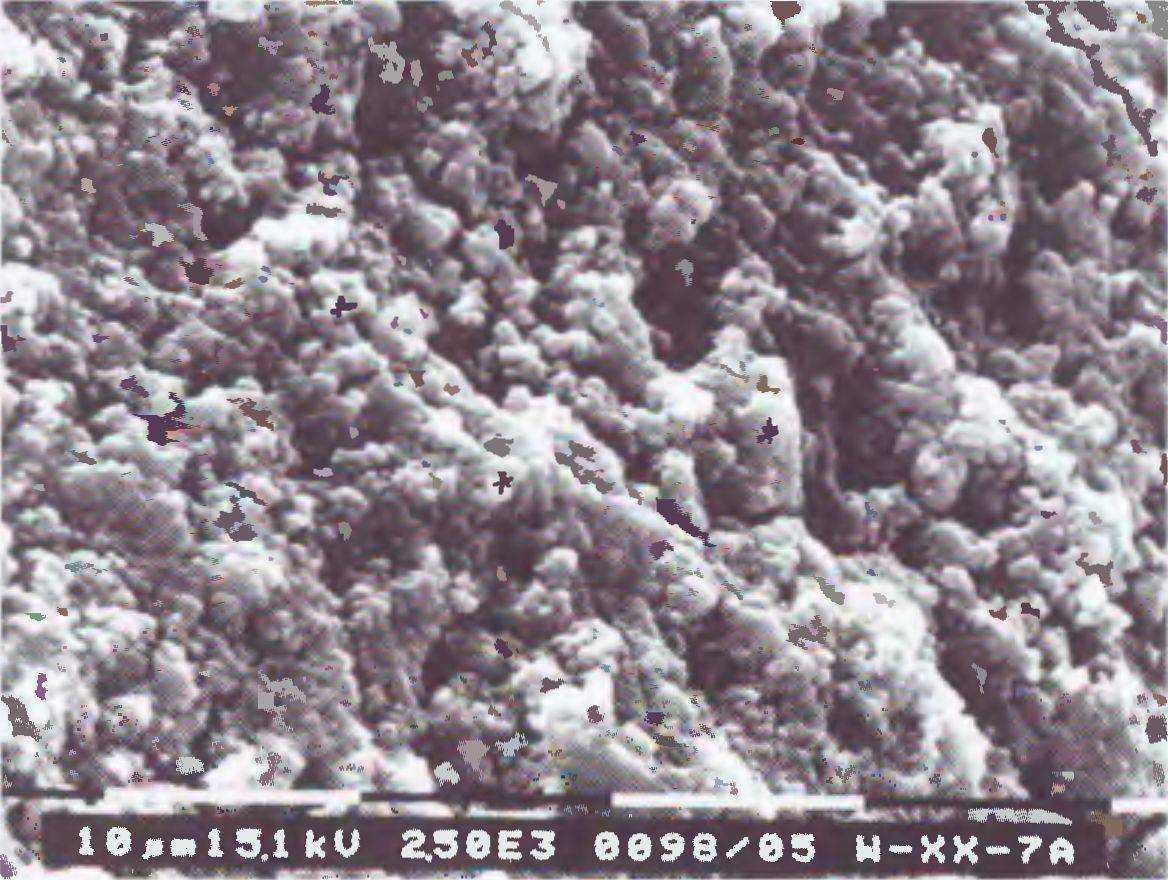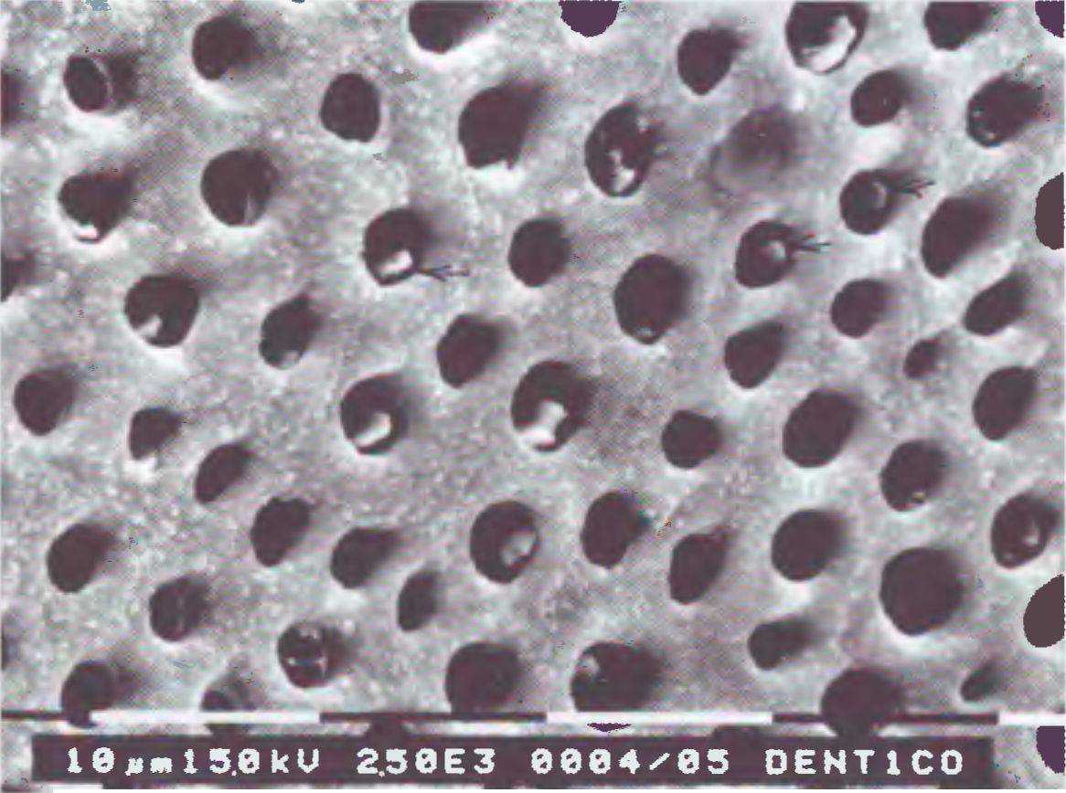 Рис. 206. Материал «БВ»: отверстия дентинных трубочек на поверхности.