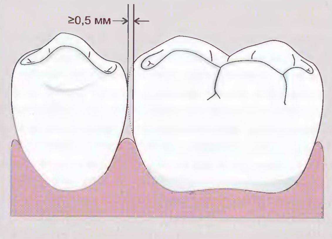 Рис. 39. Минимальное разобщение с рядом стоящим зубом