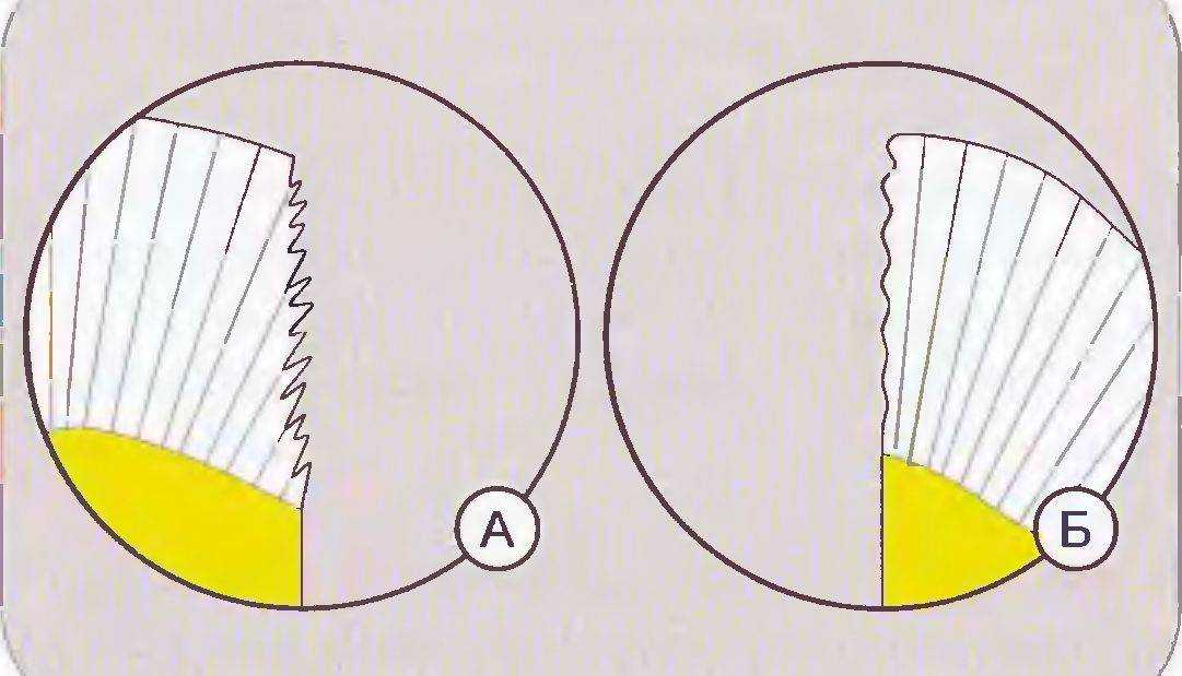 Рис. 53. Межповерхностные углы должны составлять не менее 90° (а), в придесневой области — от 90 до 110° (б)