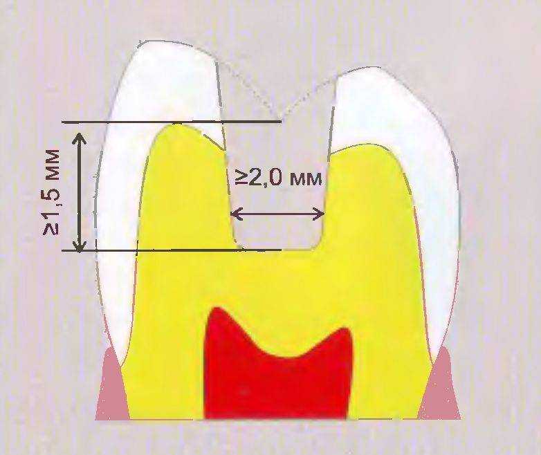 — ширина перешейка должна составлять минимум 2,0 мм как для металлических, так и для безметалловых реставраций (рис. 94).