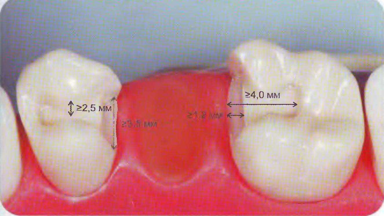 Рис. 99. Размеры безметалловой опорной вкладки мостовидного протеза