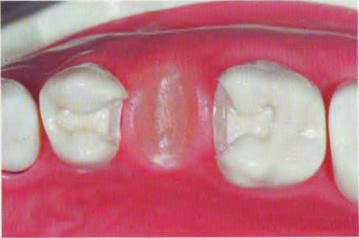 Рис 100. Зубы подготовлены под опорные безметалловые вкладки мостовидного протеза