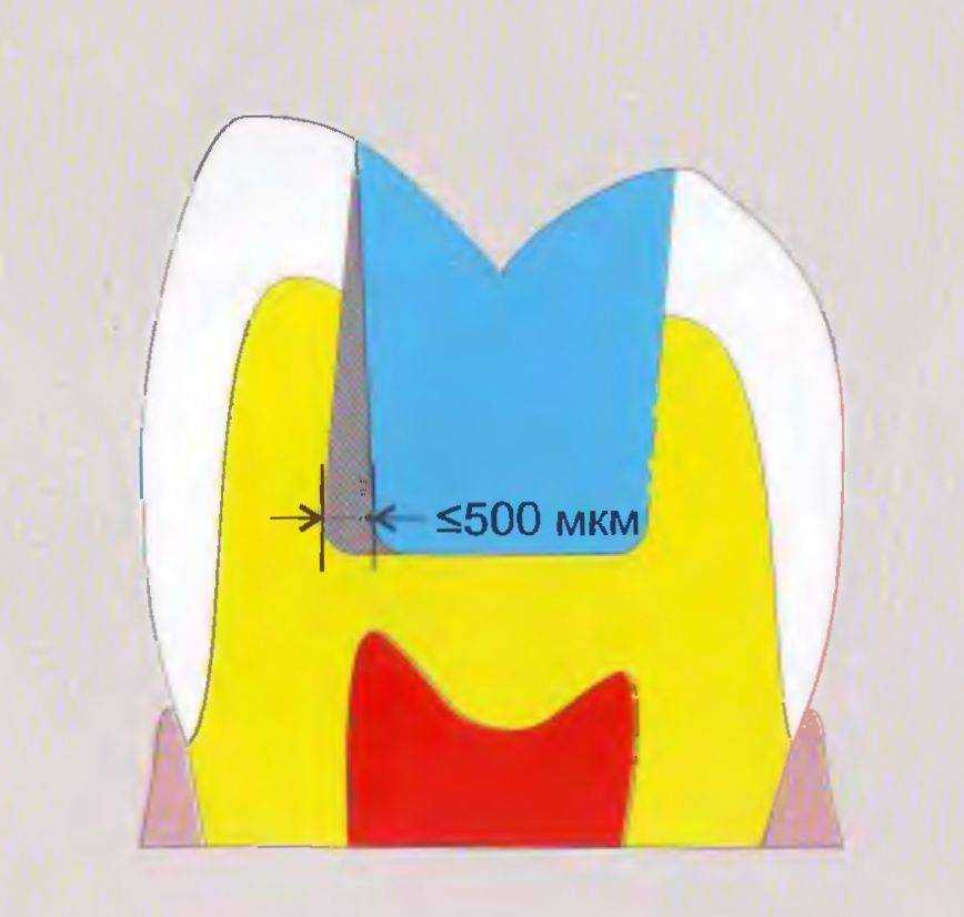 Рис. 108. Максимально допустимая величина зазора при препарировании под инлей-вкладку CEREC