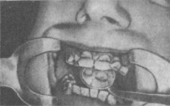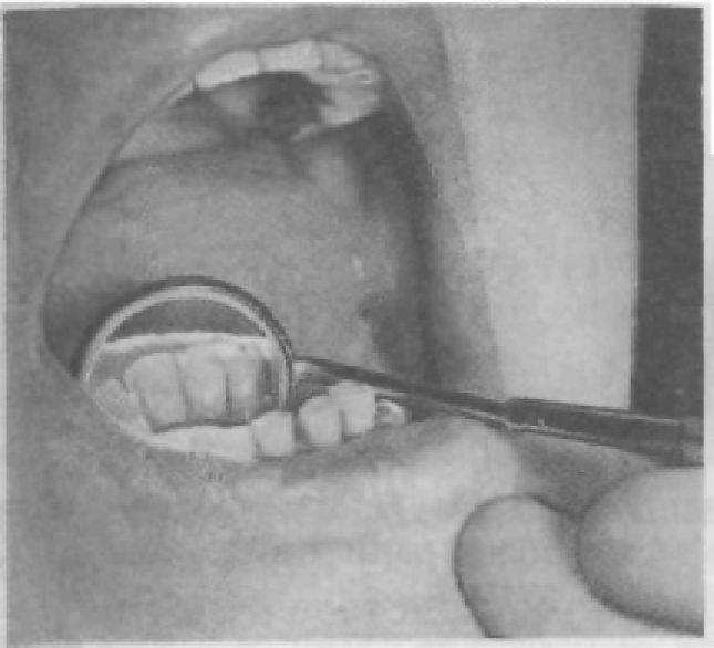Рис. 5. Положение стоматологического зеркала при обследовании зубов.
