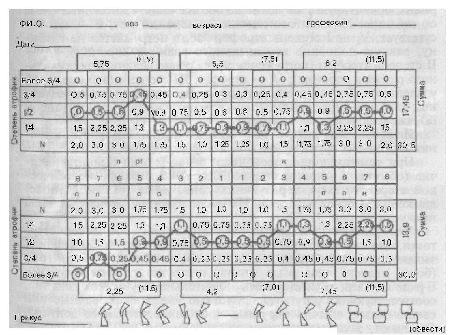 По сумме этих цифр можно судить о функциональном состоянии отдельных групп зубов и всего зубного ряда.