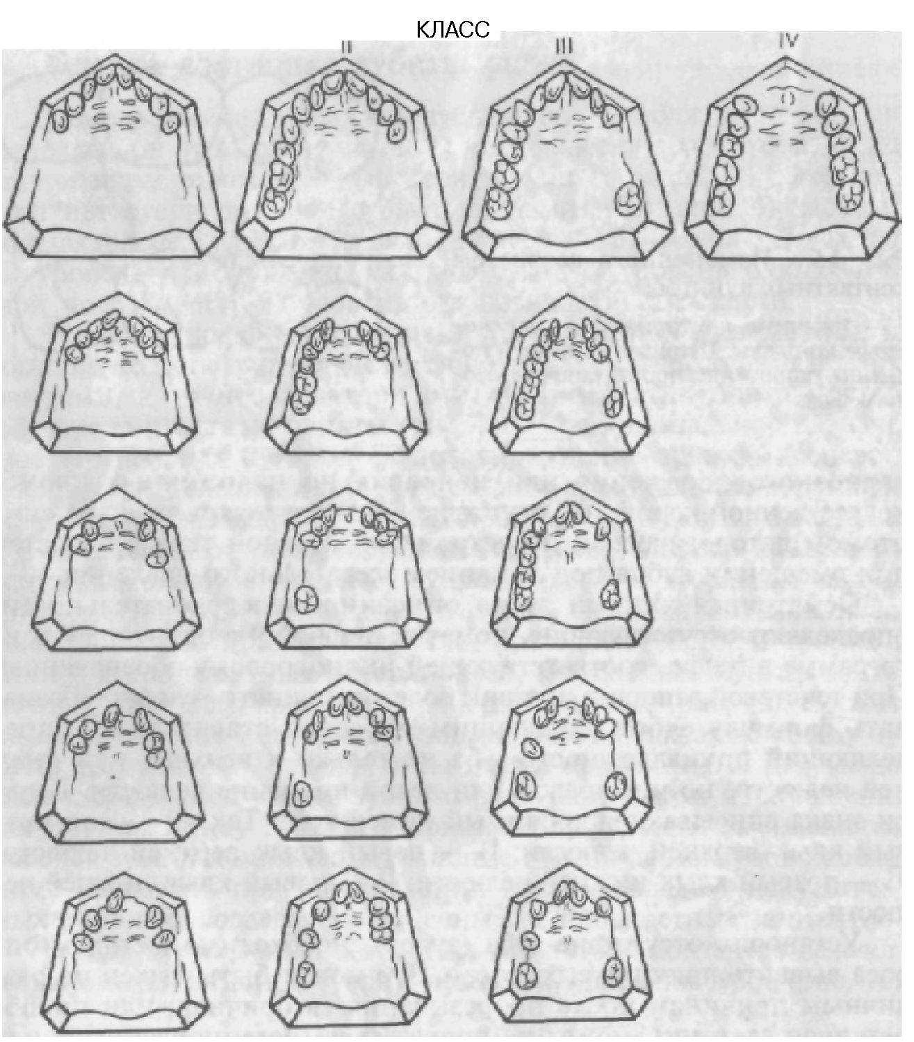 Рис. 17. Классификация дефектов зубного ряда по Кенеди.