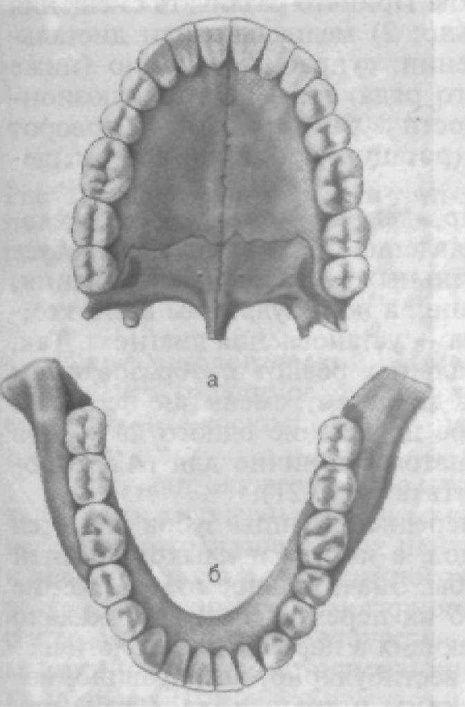 Рис. 18. Форма зубных рядов верхней (а) и нижней (б) челюстей.
