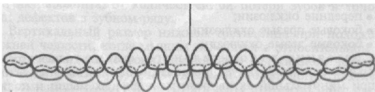 Соответственно величине угла сагиттального резцового пути любая точка на всех зубах нижней челюсти смещается вниз и вперед. При этом медиальные скаты жевательных бугорков зубов нижней челюсти скользят по дистальным скатам бугорков зубов верхней челюсти и, когда резцы начинают контактировать режущими площадками, бугорки жевательных зубов контактируют или устанавливаются друг против друга: щечные бугорки зубов нижней челюсти против щечных бугорков одноименных зубов верхней челюсти.