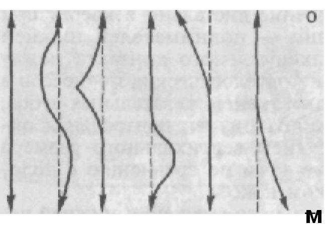 Рис.40. Варианты смещения линии центра нижней челюсти при открывании рта.