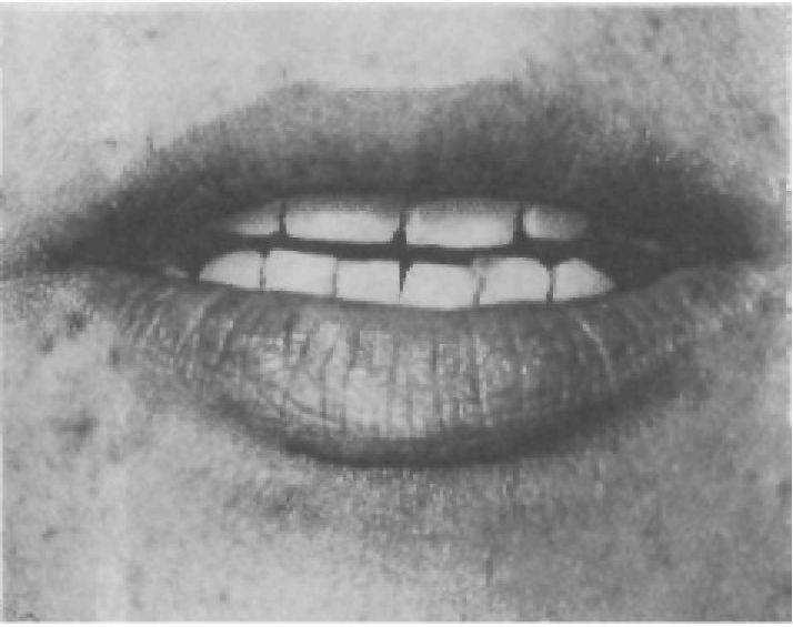 Рис.41. Несовпадение центральных линий зубных рядов при артрите.