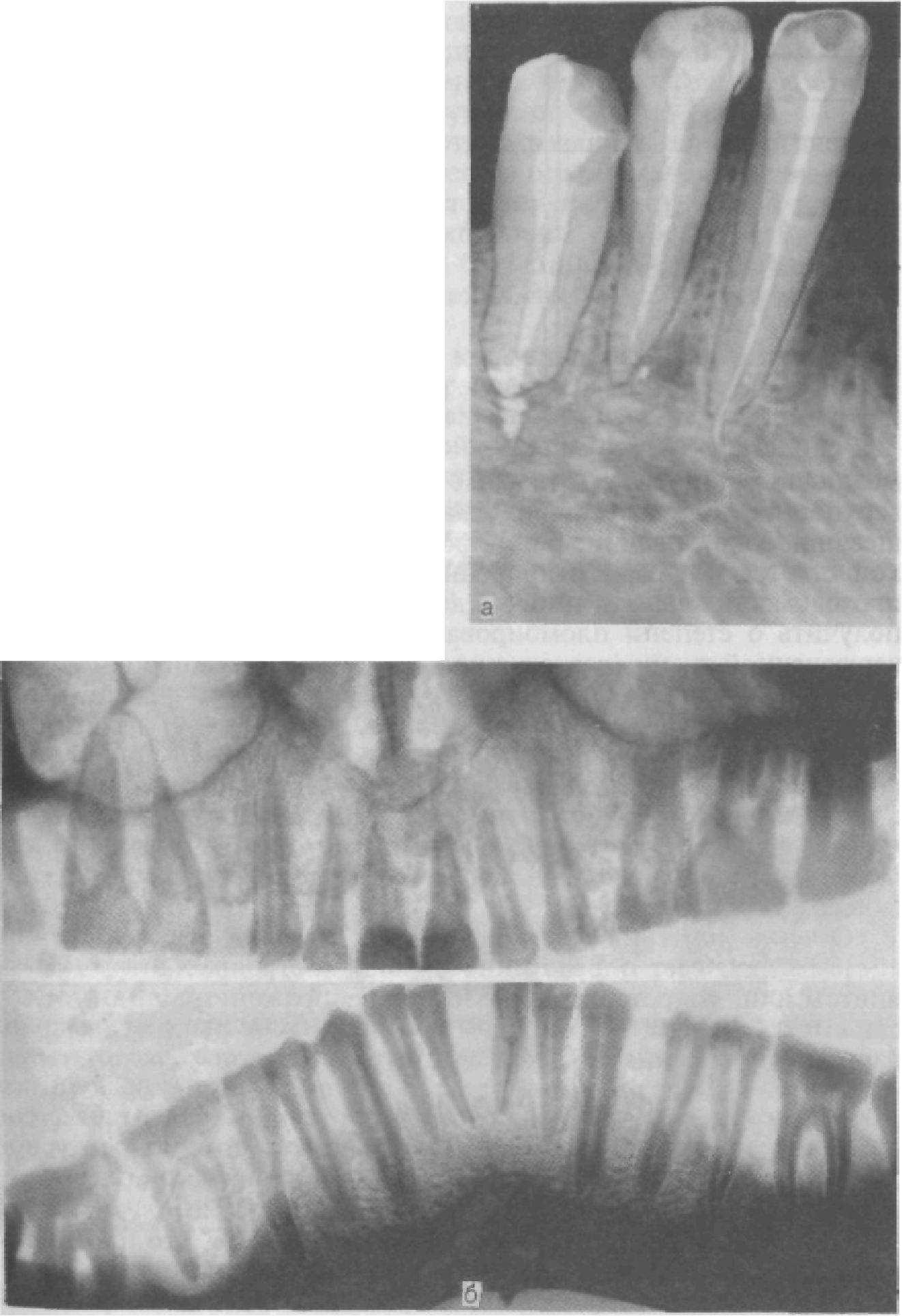 Внутриротовая рентгенограмма (рис. 56, а) дает возРис. 56. Внутриротовая (а) и панорамная (б) рентгенограммы