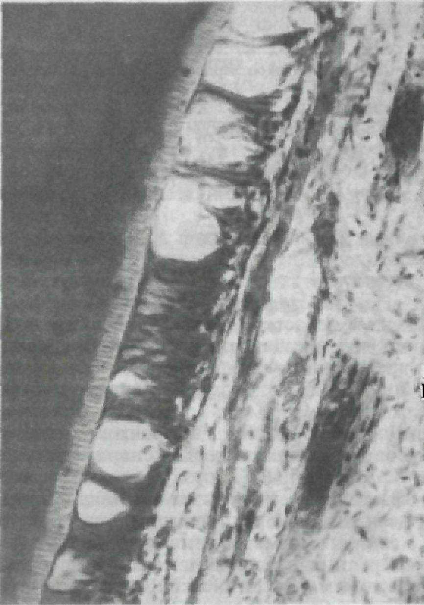Рис. 85. Вакуолизация слоя одонтопластов при патологической стертости. Микрофото.