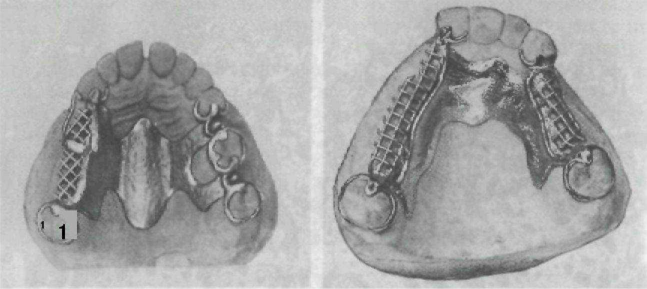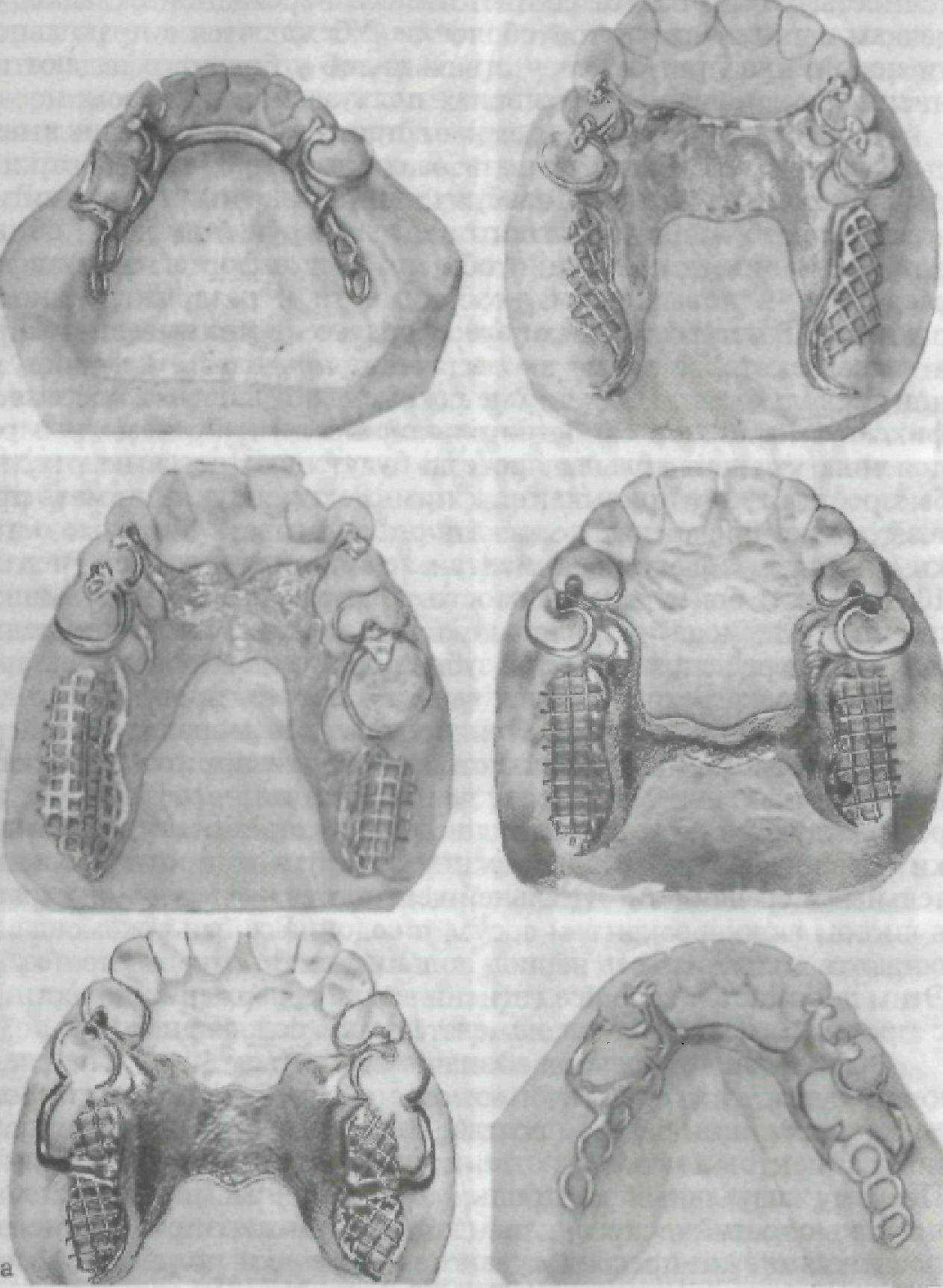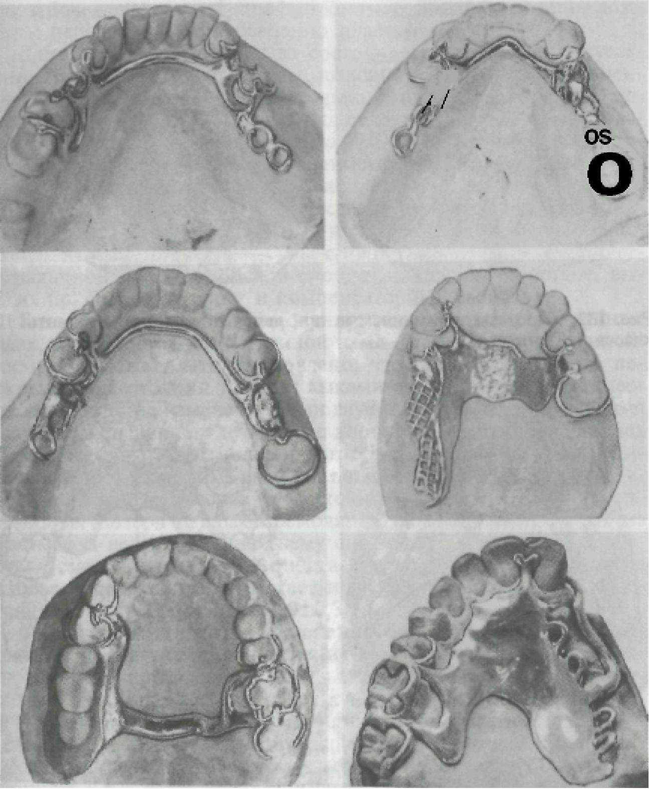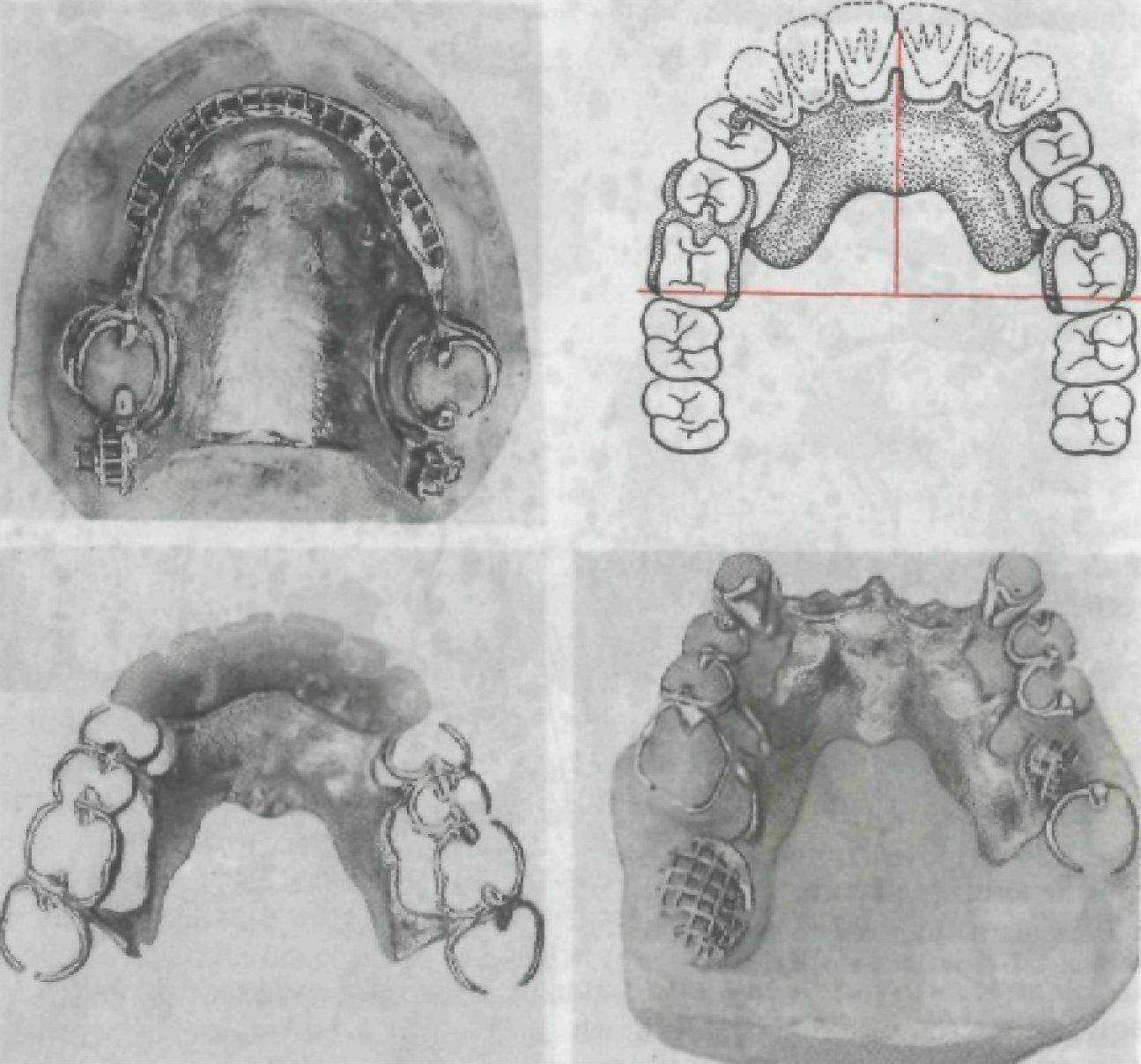 Рис. 133. Протезы, применяемые при лечении адентий. Варианты IV класса по Кенеди.