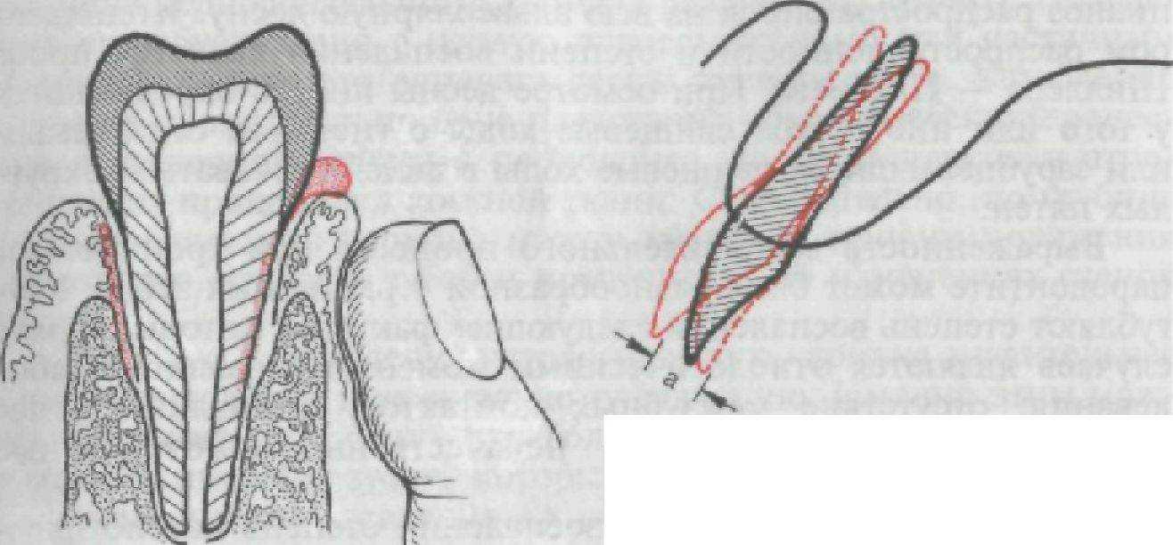 Рис. 148. Амплитуда (а) подвижности зуба при пародонтите.
