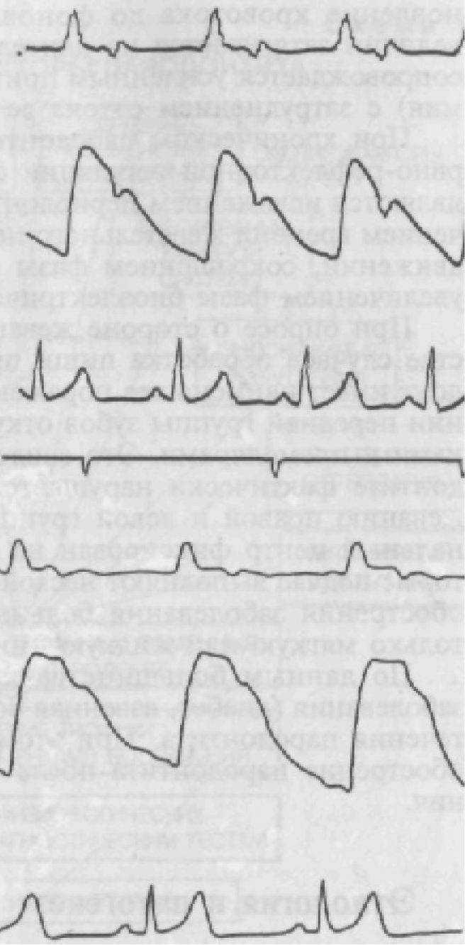 Одним из симптомов, характеризующих тяжесть воспалительного процесса при пародонтите, является изменение электровозбудимости пульпы зубов, свидетельствующее о вовлечении в процесс сосудисто-нервного пучка. В начальной стадии пародонтита в ряде случаев отмечается повышение электровозбудимости пульпы на 1,0—15 мкА; в дальнейшем наблюдается снижение возбудимости до 15—20 мкА; при значительной степени воспарис. 152. Реопародонтограммы при непораженном пародонте (а) и при пародонтите (б).