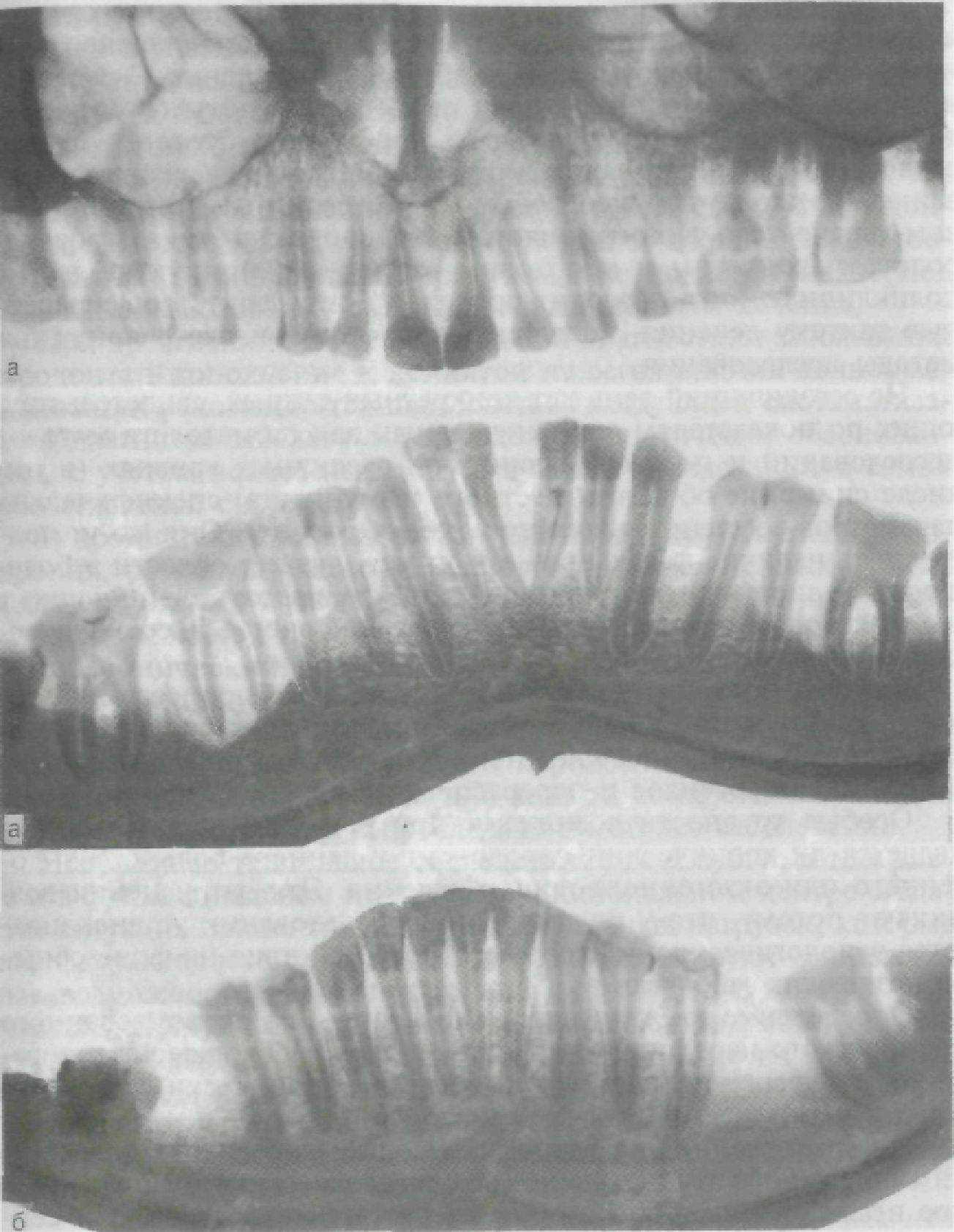 Рис. 159. Дистрофические процессы в костной ткани при генерализованном (а) и локализованном (б) пародонтите.