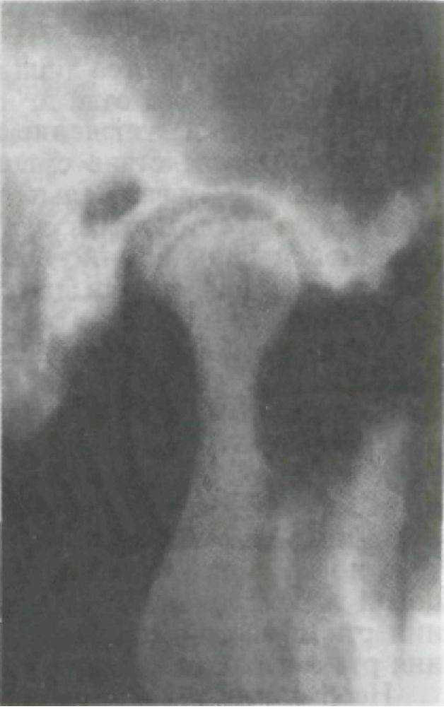 Рис. 179. Изменение формы головки нижней челюсти при артрозе височно-нижнечелюстного сустава.
