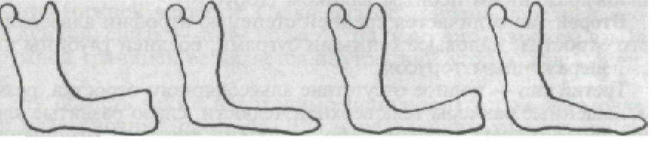 Рис. 192 Типы атрофии нижней челюсти при полном отсутствии зубов.