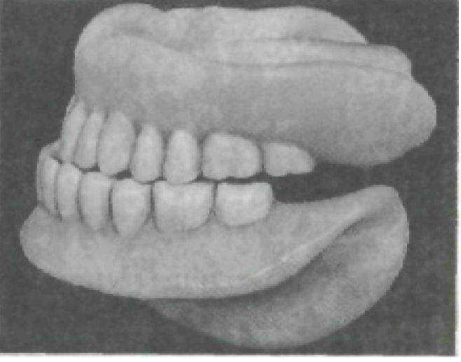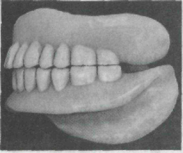 Проверяя конструкцию протеза, можно наблюдать такую же картину, как при фиксации нижней челюсти не в центральном, а в переднем или заднем соотношении.