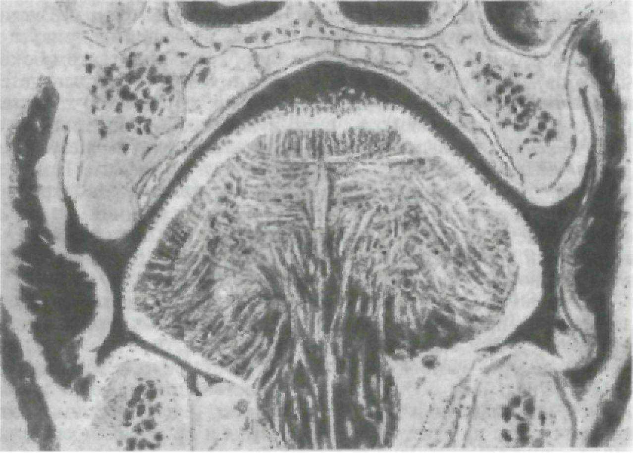 нижней челюстей на разрезе V-образные и обращены друг к другу острыми краями.