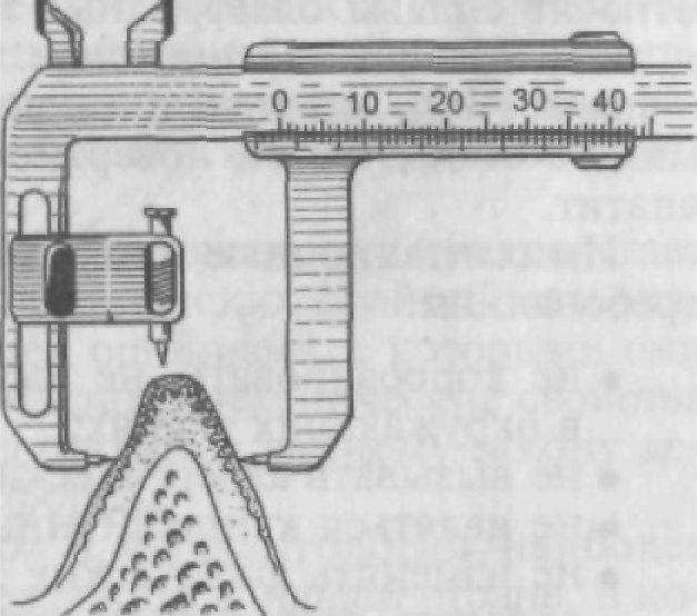 мой имплантации необходимо использовать специальный толщиномер (рис. 275, 276). Для выбора количества опорных элементов при конструировании мостовидных протезов с опорами на имплантаты желательно использовать одонтопародонтограмму по В.Ю.Курляндскому. Условно можно считать, что коэффициент одного зуба со здоровым пародонтом приблизительно равен двум хороию прижившимся внутрикостным цилиндрическим имплантатам.