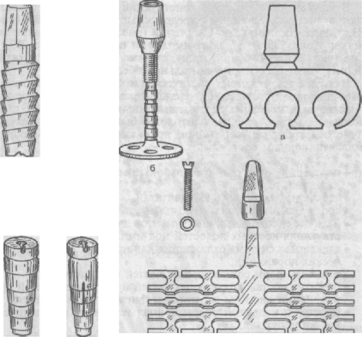 Рис. 282. Имплантаты: цилиндрический (а); винтовой (б).