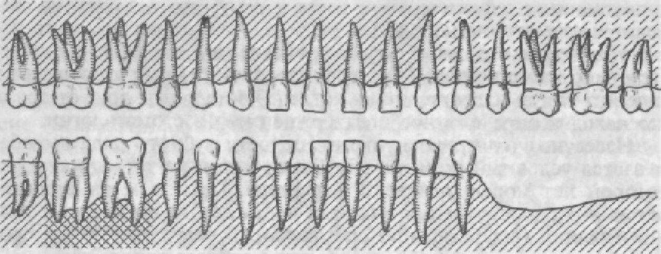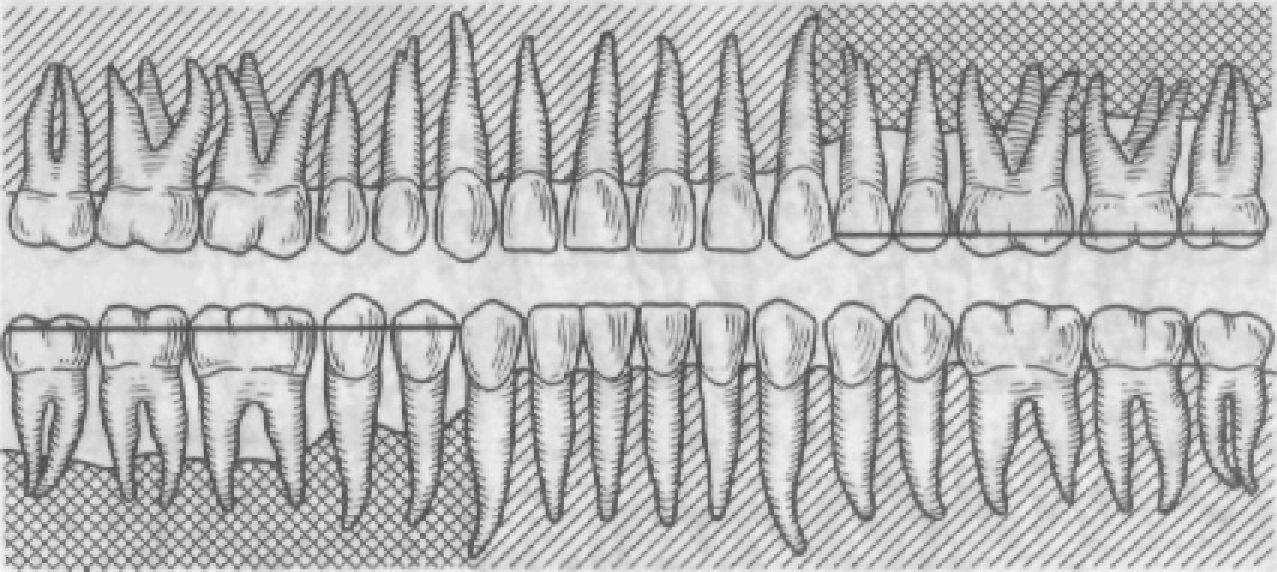 Таким образом, соединение в блок различно функционально ориентированных групп зубов создает функционально новую зубную систему, способную ослабить вредные силы давления, возникающие во время обработки пищи во рту.