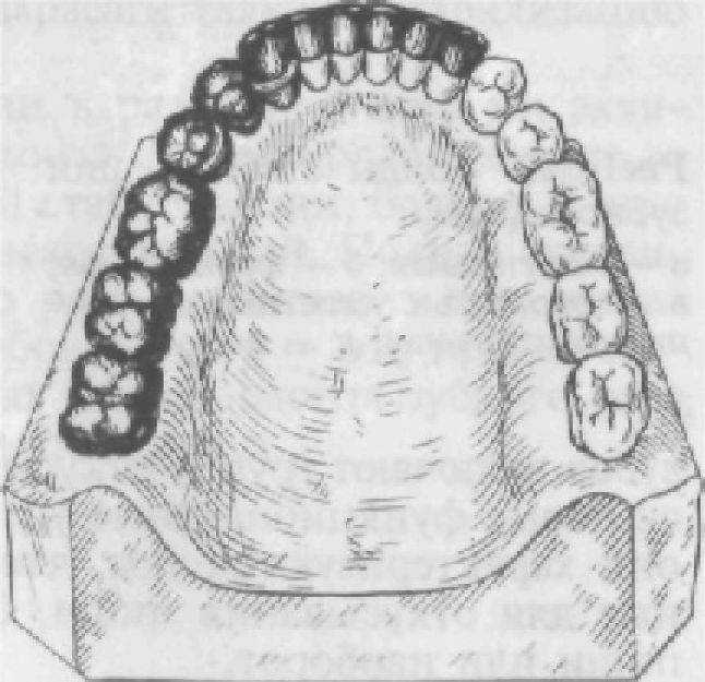 3) все другие зубы при этих же условиях не приспособлены к несению дополнительной нагрузки; они могут нести консоль при ослабленном состоянии пародонта антагонистов или при блокировании ряда зубов.