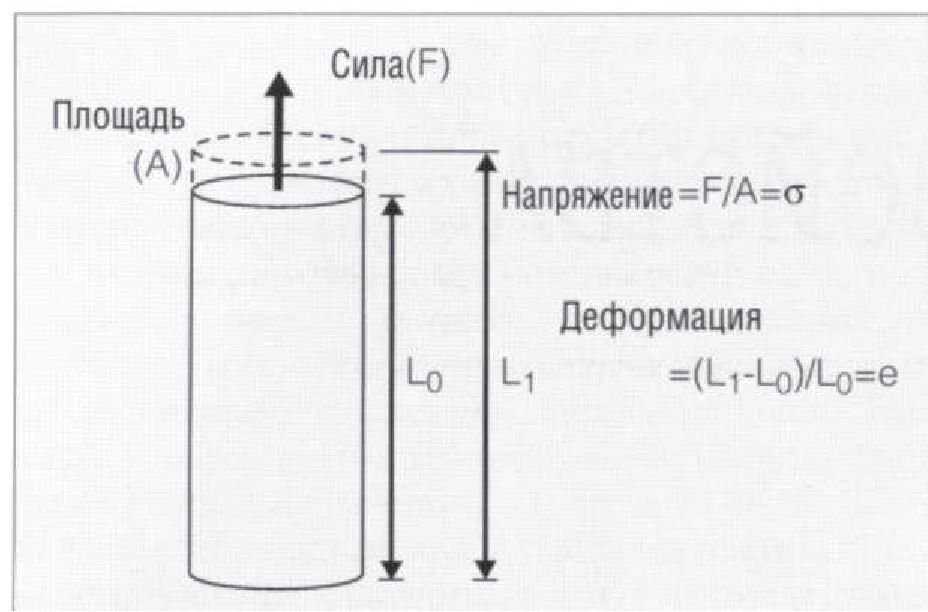 Напряжение и деформация не являются свойствами материала, но они позволяют определить ряд механических свойств, которые без этих характеристических параметров невозможно было бы оценить. На выше приведенном примере напряжение возникло под воздействием продольной нагрузки (то есть, наг-