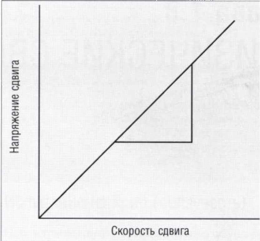Рис. 1.8.2. Зависимость напряжения сдвига от скорости для ньютоновской жидкости