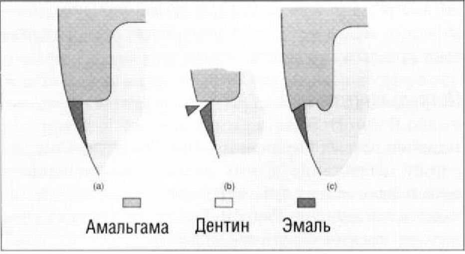 Некоторые из этих неудач неизбежны, будучи связанными, с несовершенством свойств амальгам, но других можно избежать, если учитывать показания к ее применению и использовать рациональные технические приемы пломбирования, включая надлежащее формирование кариозной полости.
