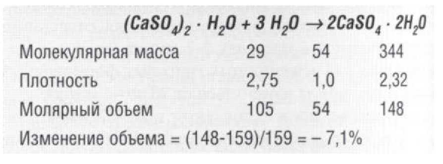 Таблица 3.1.2 Расширение при затвердевании некоторых типов гипса.