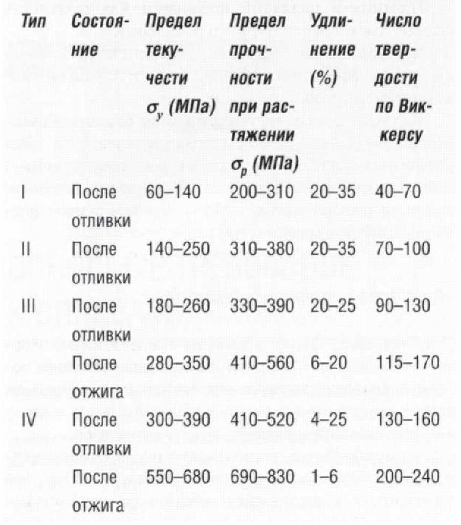 Состав и свойства некоторых сплавов после процесса упрочняющей термообработки представлены в Таблице 3.3.5. Хотя у этих сплавов присутствует некоторый элемент самоупрочнения при медленном охлаждении, их свойства ниже по сравнению со сплавами, процесс термообработки которых ведется при тщательном контроле.