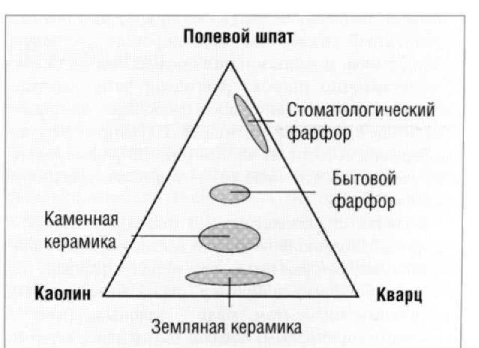 Рис. 3.4.2. Относительные составы керамических изделий, изготовленных на основе полевого шпата, каолина и кварца