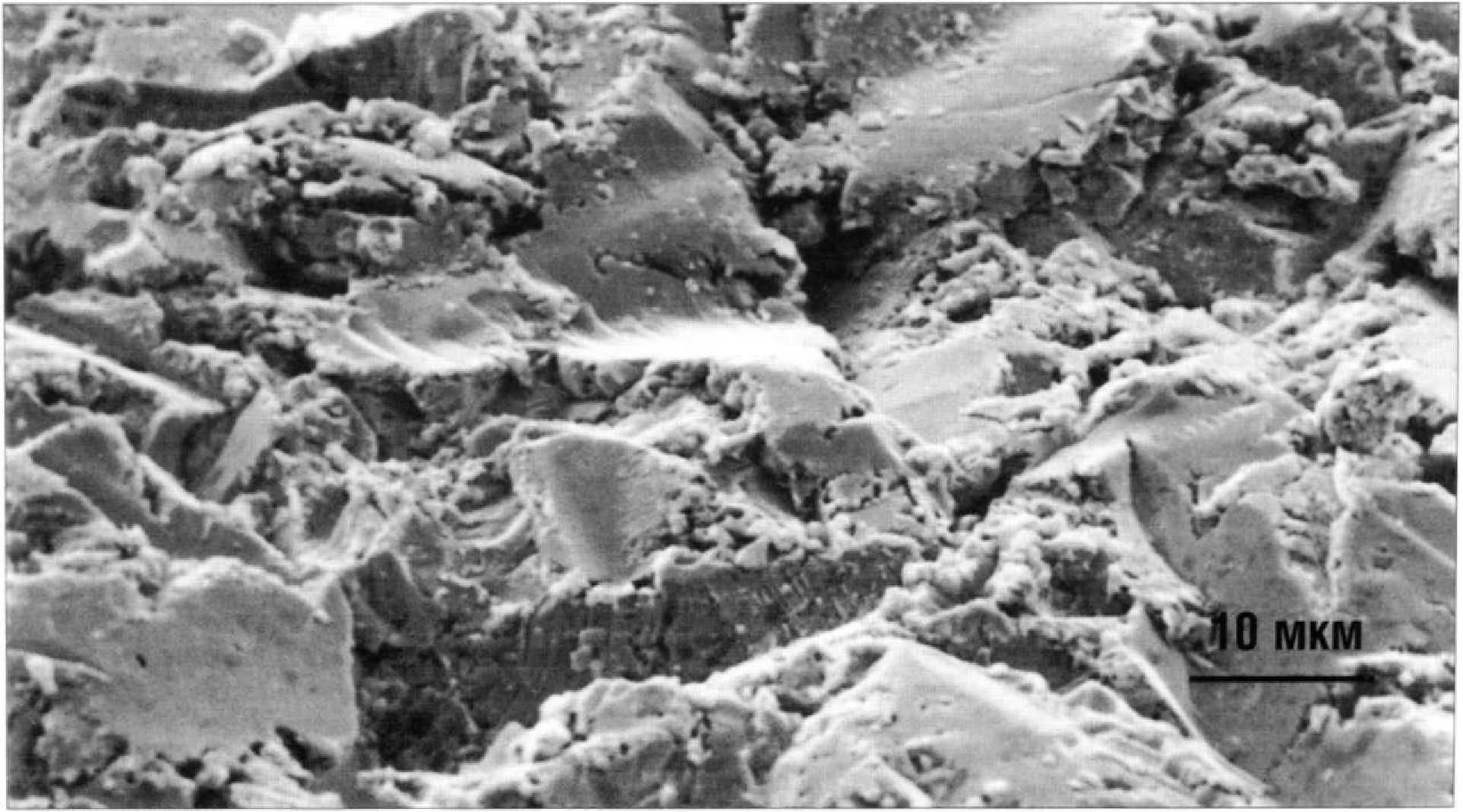 Механическая ретенция возникает, когда керамика затекает в микроскопические поднутрения на поверхности металла. Шероховатость поверхности металла часто повышают путем пескоструйной обработки металлических каркасов зубных протезов корундовым песком или шлифованием. Благодаря этим процедурам увеличивается количество участков механического зацепления керамики (Рис. 3.5.2). Дополнительным преимуществом проведения этих двух процедур является создание очень чистой поверхности, способствующей смачиванию металла керамикой.