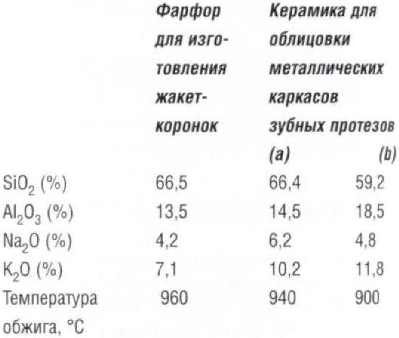 Состав керамики для облицовки металлических каркасов зубных протезов отличается от состава керамики для изготовления цельнокерамических реставрации.