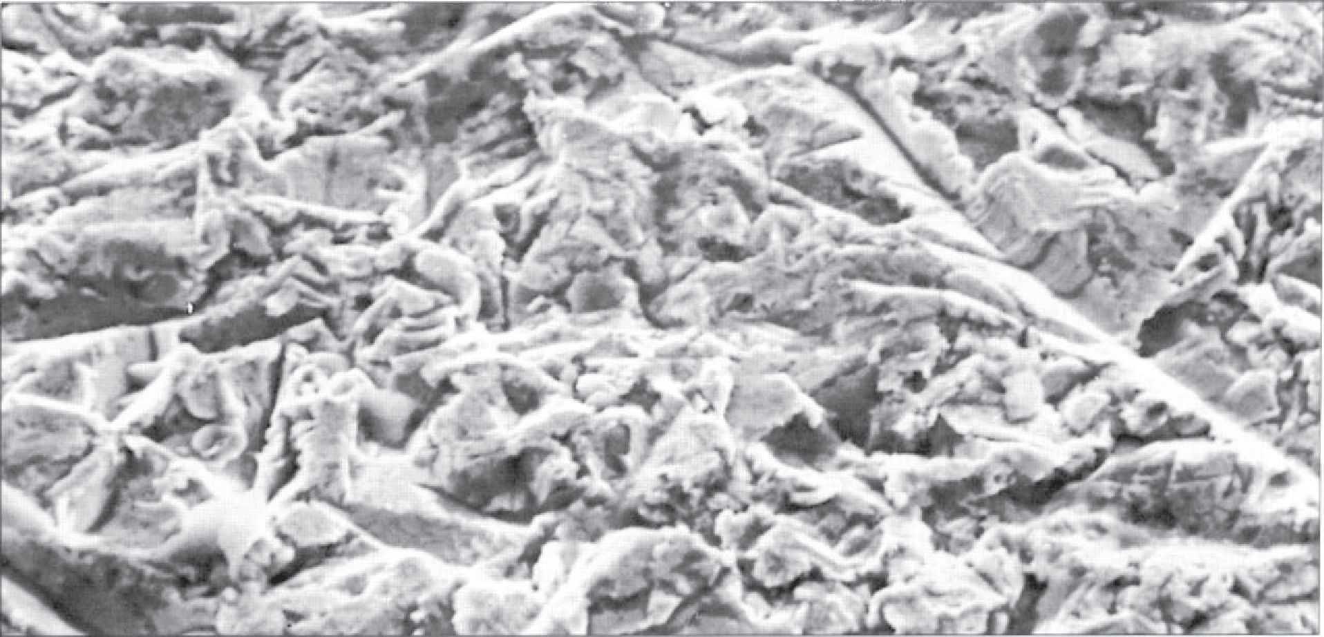 Рис. 3.6.9. Поверхность никель-хромового сплава под сканирующим электронным микроскопом после его пескоструйной обработки порошком оксида алюминия