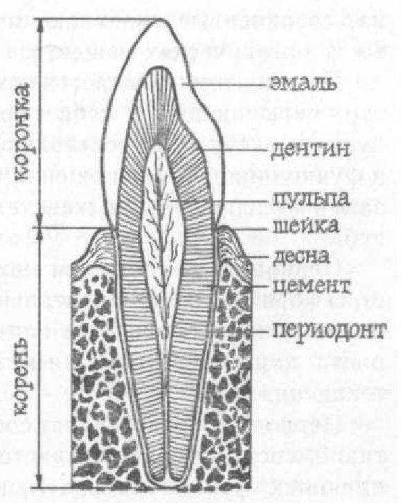 Пульпа (мякоть зуба) заполняет полости в области коронки и корня и состоит из рыхлой соединительной ткани, клеточных элементов, сосудов и нервов. Она играет большую роль в питании дентина и эмали.
