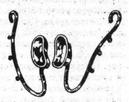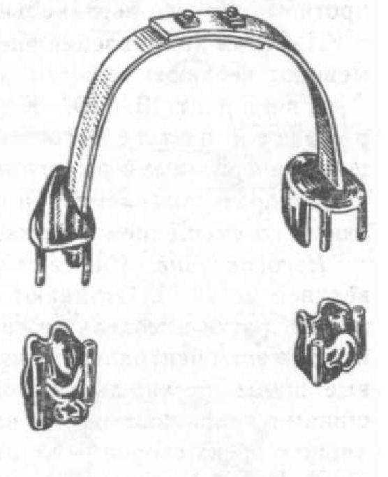 Капп о-ш т а н г о в ы й аппарат А. Л. Г р о з о вс к о г о состоит из металлических капп на зубы отломков нижней челюсти, плечевых отростков с отверстиями для винтов, двух винтов, соединенных припаянной пластинкой (рис. 75).