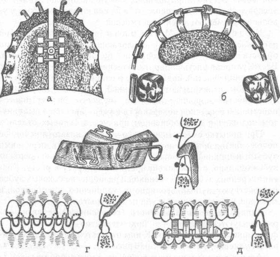 а — аппарат Хургияой; б — аппарат Гуляевой; и — аппарат Брюкля; г, д аппараты.