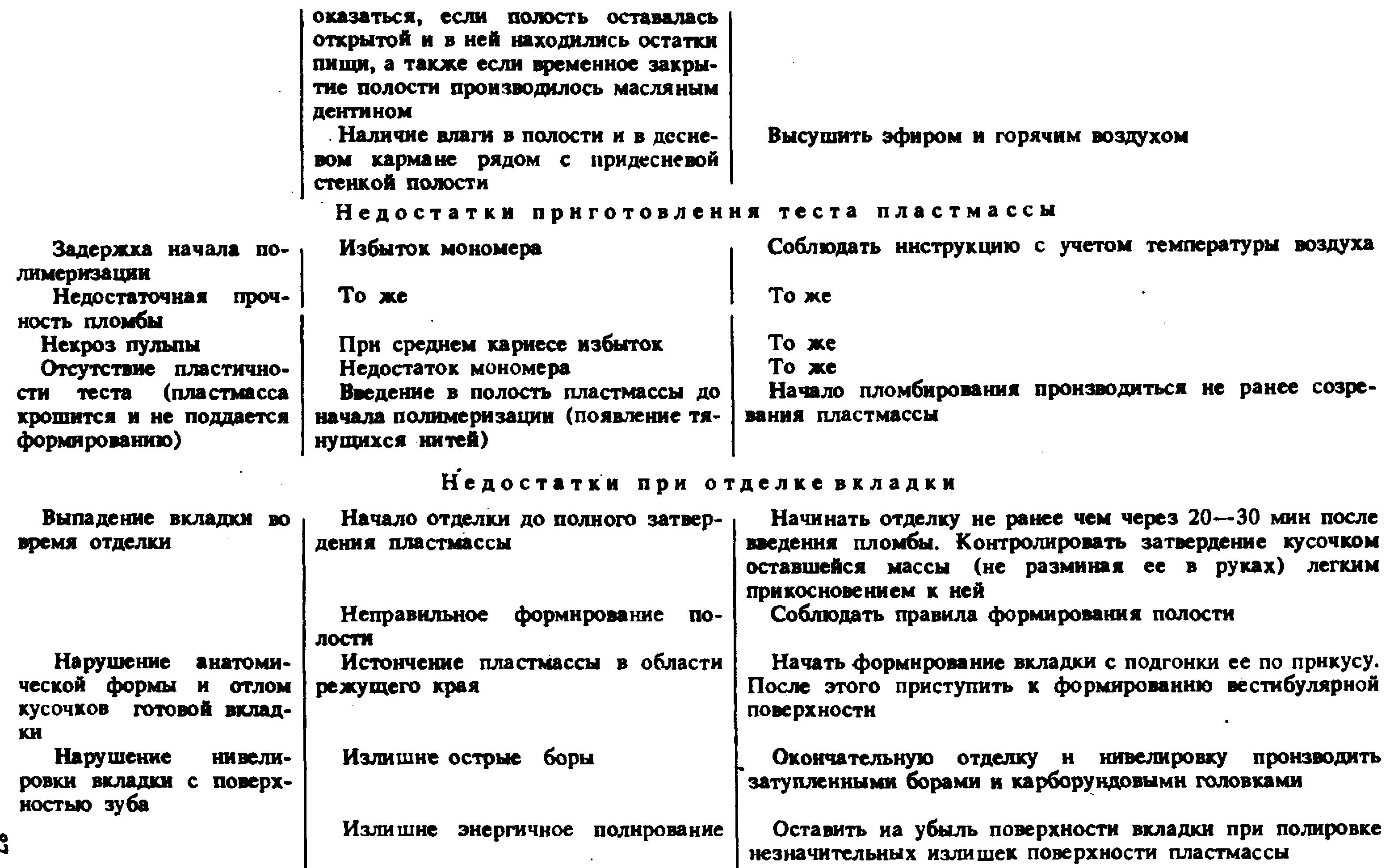 А. М. Алыпиц (1969) суммировал ошибки и осложнения при формировании полостей н моделировании вкладок (табл. 2).